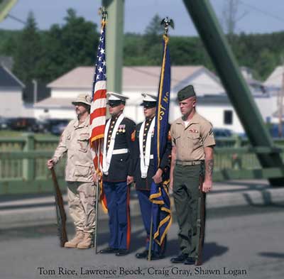 At 9:30 AM the Honor Guard will perform a salute honoring those who died at sea at the Main Street bridge. The American Legion Auxiliary president will place a wreath onto the Chenango River. A rifle salute follows.