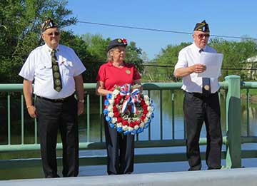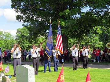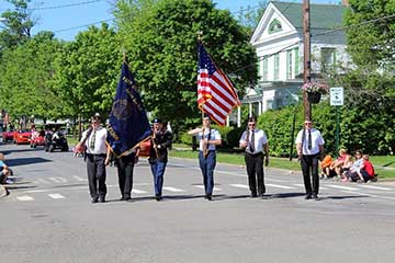 Now, sit back and recall that in prior years the parade assembled on S. Washington Street in front of Oxford American Legion Post 376 building. Step-off is at 9:30 AM. Oxford Police cleared the route, you picture how it was: The parade proceeds north, turns right at the park. The column includes: American Legion Honor Guard, Oxford Post 376 Commander, Veterans marching or in cars, Guest Speakers, Oxford Veterans home Bus, Oxford Village and Town Officials, Oxford Academy Color Guard and Band, Other volunteer marchers, Scouts, Rotary, civic groups, sports teams, horse drawn vehicles, antique cars chauffeuring other veterans. Oxford Fire and Rescue Vehicles always close the column. The procession crosses Route 12 and stops at the bridge for an honors ceremony. A wreath is laid on the water and the Honor Guard fires a salute. The Oxford Academy Band plays taps.Now we proceed through the village to the Riverside Cemetery where the post Commander welcomes the audience and chaplain reads the Role Call of the deceased. A local clergyman offers an invocation. The Star Spangled Banner is performed by the school band. The Oxford American Legion Boys State members are recognized and the Legion Auxiliary Girls State is recognized. Speeches by the Guest of Honor and the Oxford Post Commander, followed by the closing benediction, Honors Ceremony and Taps. The post 376 Honor Guard perform Taps. Remember this day from the past and be assured the PARADE SHALL RETURN, along with all the other events so typical of American Memorial Days.
