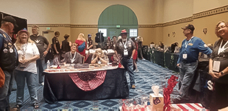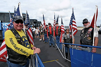 The Patriot Guard also take charge of the Remembrance Room, a very solemn, moving place displaying a flag for each veteran lost as a result of the war on terrorism. Families can go there and honor their hero in any way they wish. Some leave small mementos, some leave only tears. All the flags, poles and bases are donated by one of the sponsors.